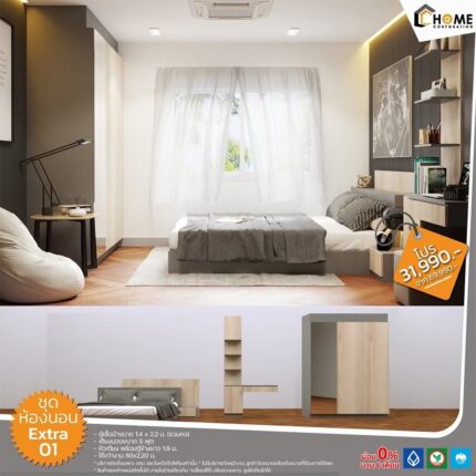 Original price was: 53,980 บาท.28,990 บาทCurrent price is: 28,990 บาท.เซทห้องนอนรุ่น Extra01